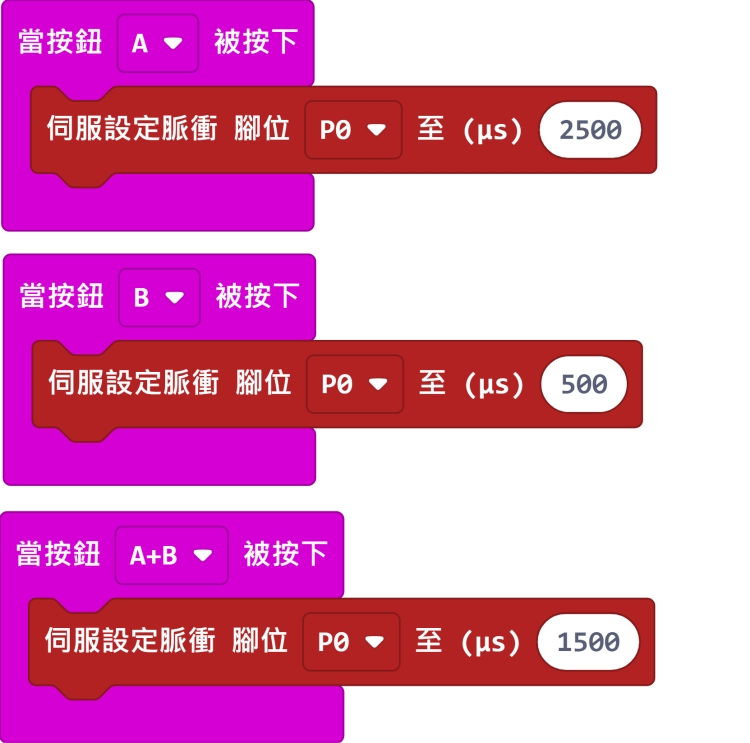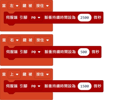 續轉舵機控制數值範圍由500至2500。詳細可以參考這個圖表。