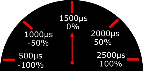 500為反方向全速轉動,2500為正方向全速轉動,1500為停止轉動。
