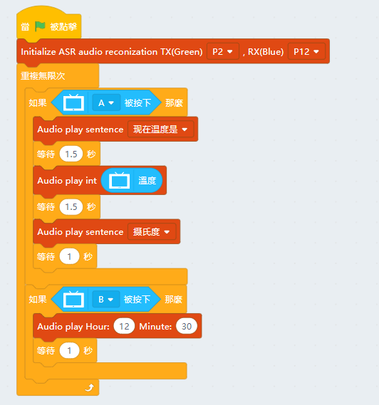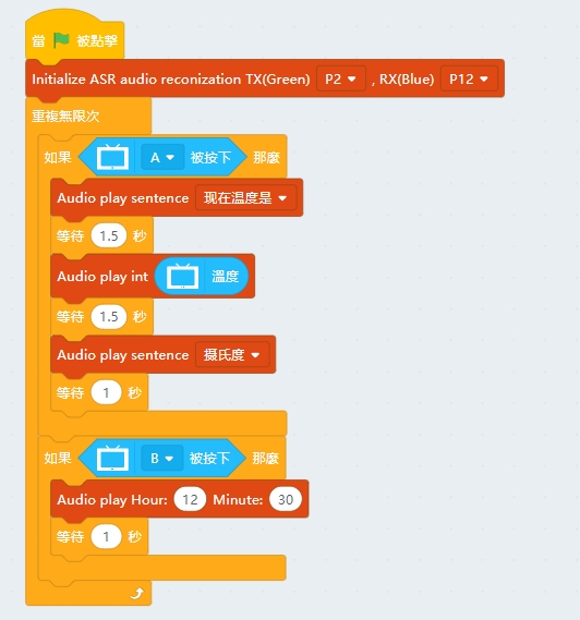 5. 按下A鍵或B鍵,語音模組就會說出相應指令。