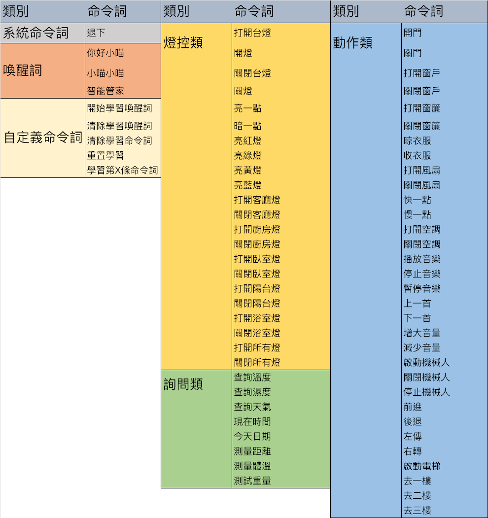 ## 國語版指令列表