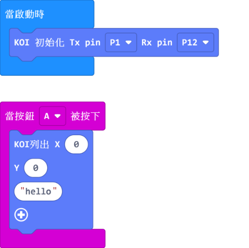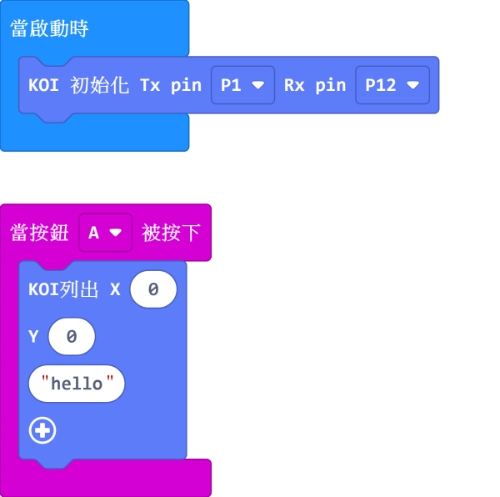 加載KOI插件:https://github.com/KittenBot/pxt-koi¶