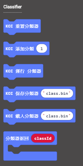 如果大家熟悉PC端的KittenbotML5外掛程式,那麼理解KOI的Classifier 積木塊也就很簡單了。