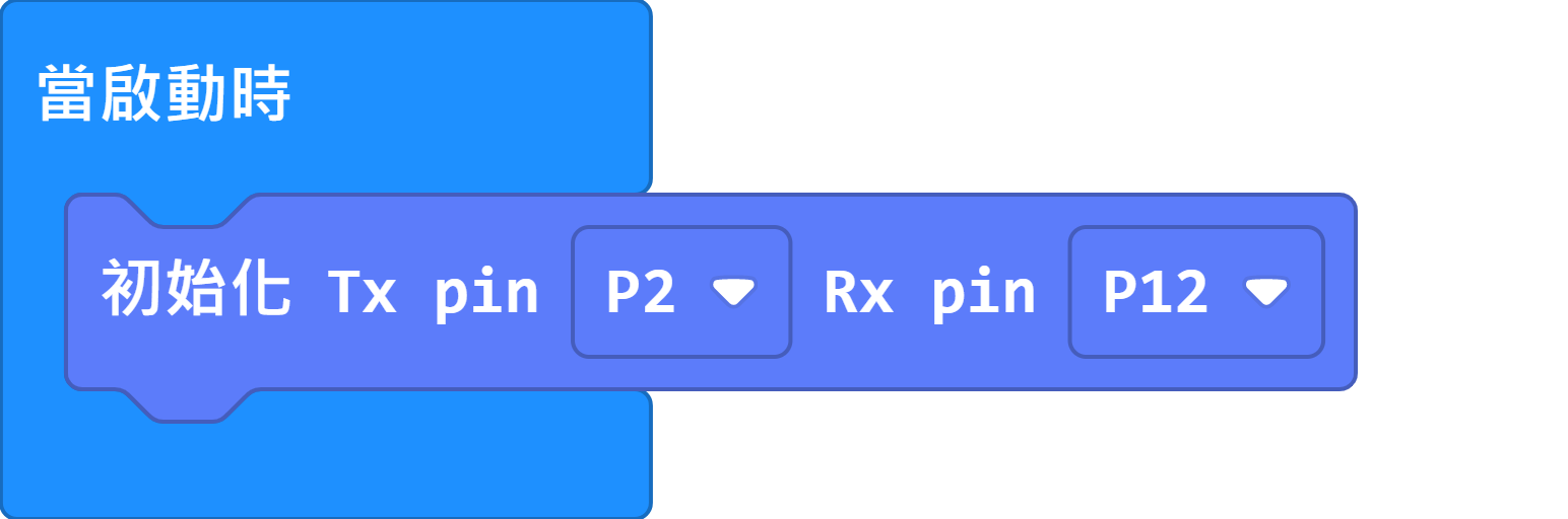 由於Robotbit Edu的通訊接口使用了P2與P12,我們在MakeCode裡面就要相應地選擇引腳。