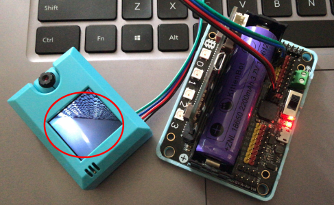 再次檢查接線無誤 後, 就可以打開Robitbit 的開關, 便會看到KOI 的屏幕顯示出鏡頭當下所拍到的畫面。