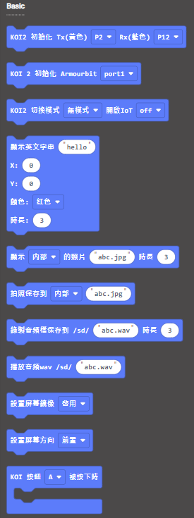加載成功後，積木欄會新增koi2的積木。