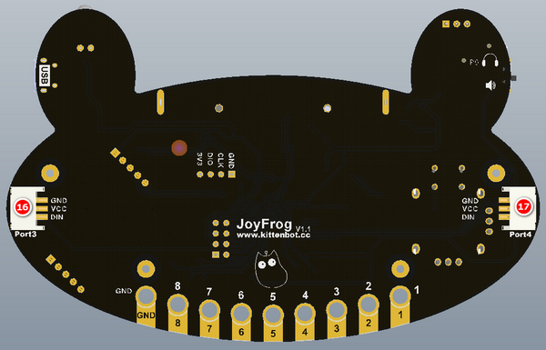 JoyFrog是Kittenbot推出的Microbit擴展版,它為Microbit增加了按鍵和搖桿等的輸入方式,適合作為遙距控制機械人的遙控器。它還可以用作主控板,在Kittenblock中充當遊戲手掣使用。