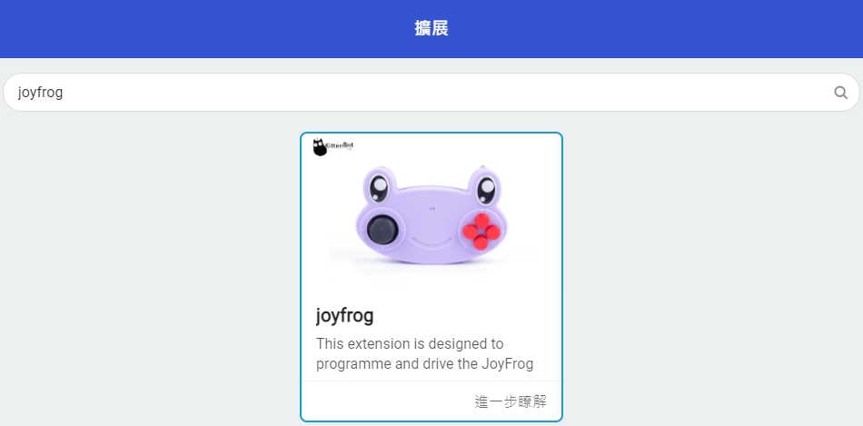 在擴展頁直接搜尋JoyFrog (joyfrog已經過微軟認證,可以直接搜尋)