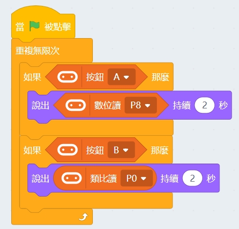 在Microbit的積木欄中按下感嘆號 ( ! ) 按鈕。