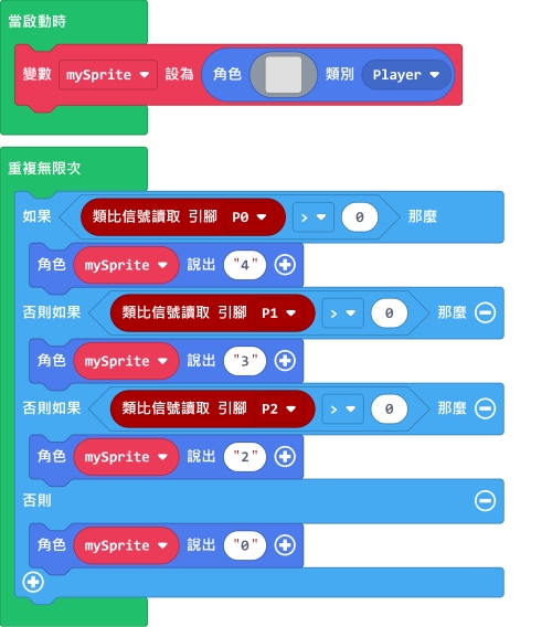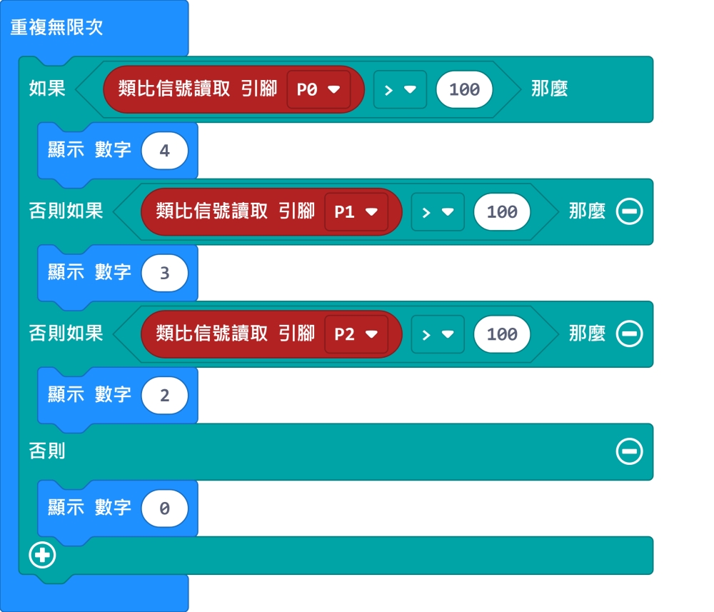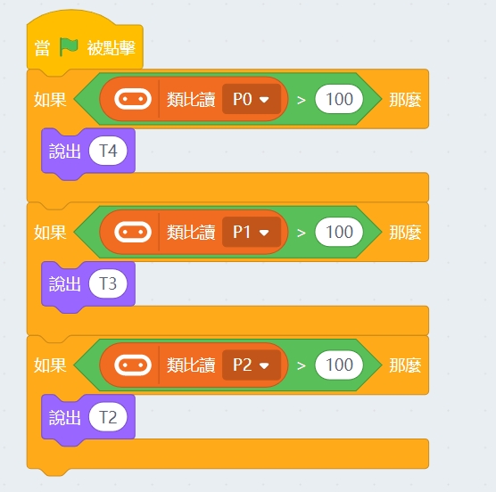 由於這是類比模組,所以只能使用robotbit的PIN0-2。(使用PIN0的話需要拔除蜂鳴器跳線帽)