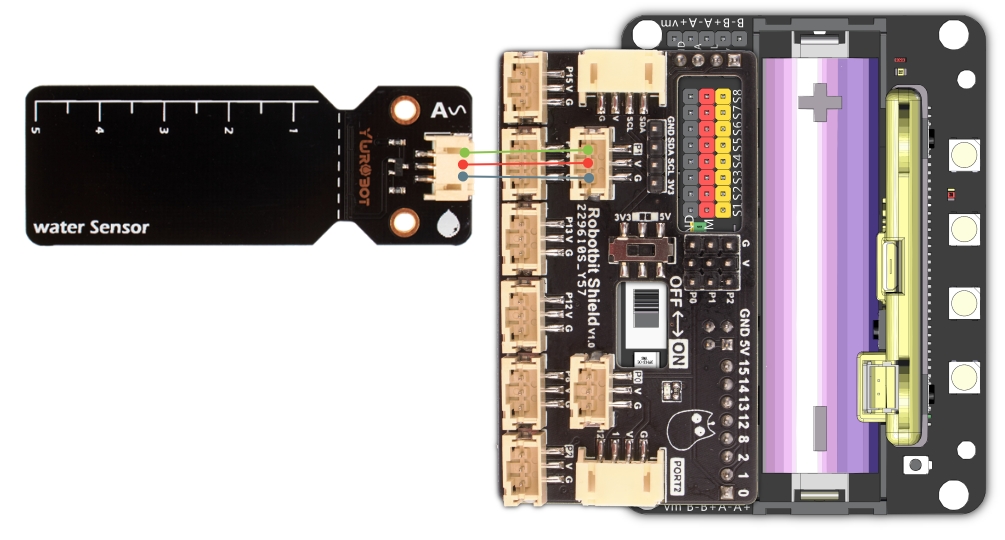 將水位感應器模組連接到Robotbit Shield的3PIN接口。