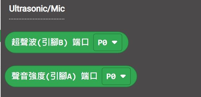 例如,現在我想使用超聲波模組上的超聲波距離功能。在編程積木中,文字提示我們這功能是屬於模組的引腳B,所以我們就可以按照指示接線。