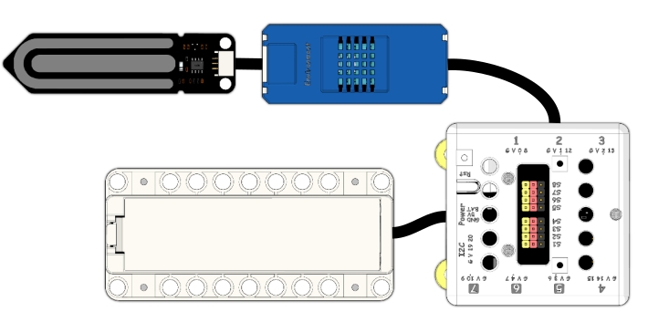 將溫度濕度魔塊用4pin排線連接至Armourbit,然後用3pin排線將魔塊連接至溫度濕度魔塊。