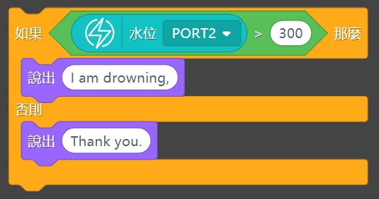 這是一塊水位雨水測試魔塊,它可以測量水位高低和是否有雨滴,水位越高數值越大。