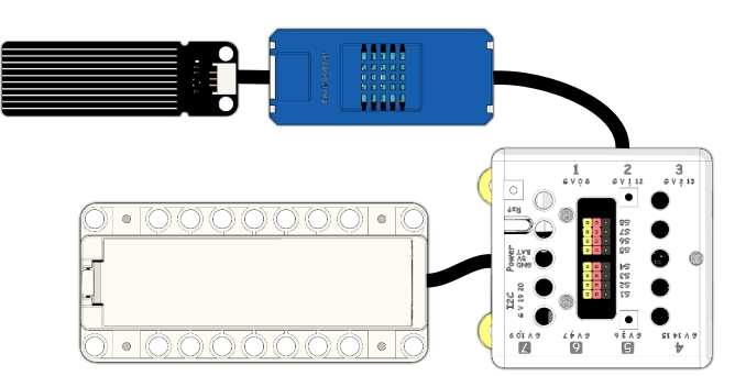 將溫度濕度感應器用4pin排線連接至Armourbit,然後用3pin排線將感應器連接至溫度濕度感應器。