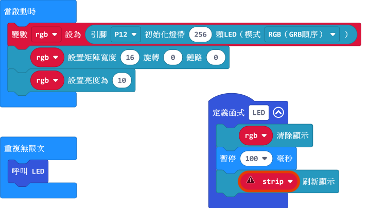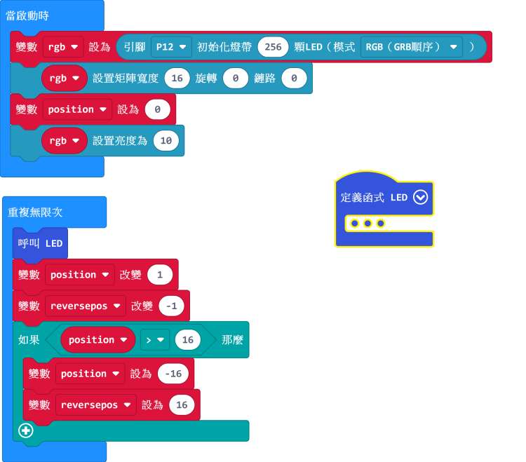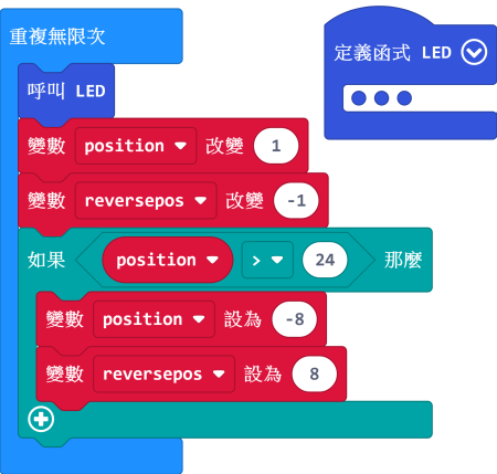 現階段我們只需要將以下積木添加至我們剛剛做的函式和無限重複積木塊裏。