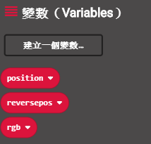在變數欄中增加2項變數,用來控制燈板動畫。