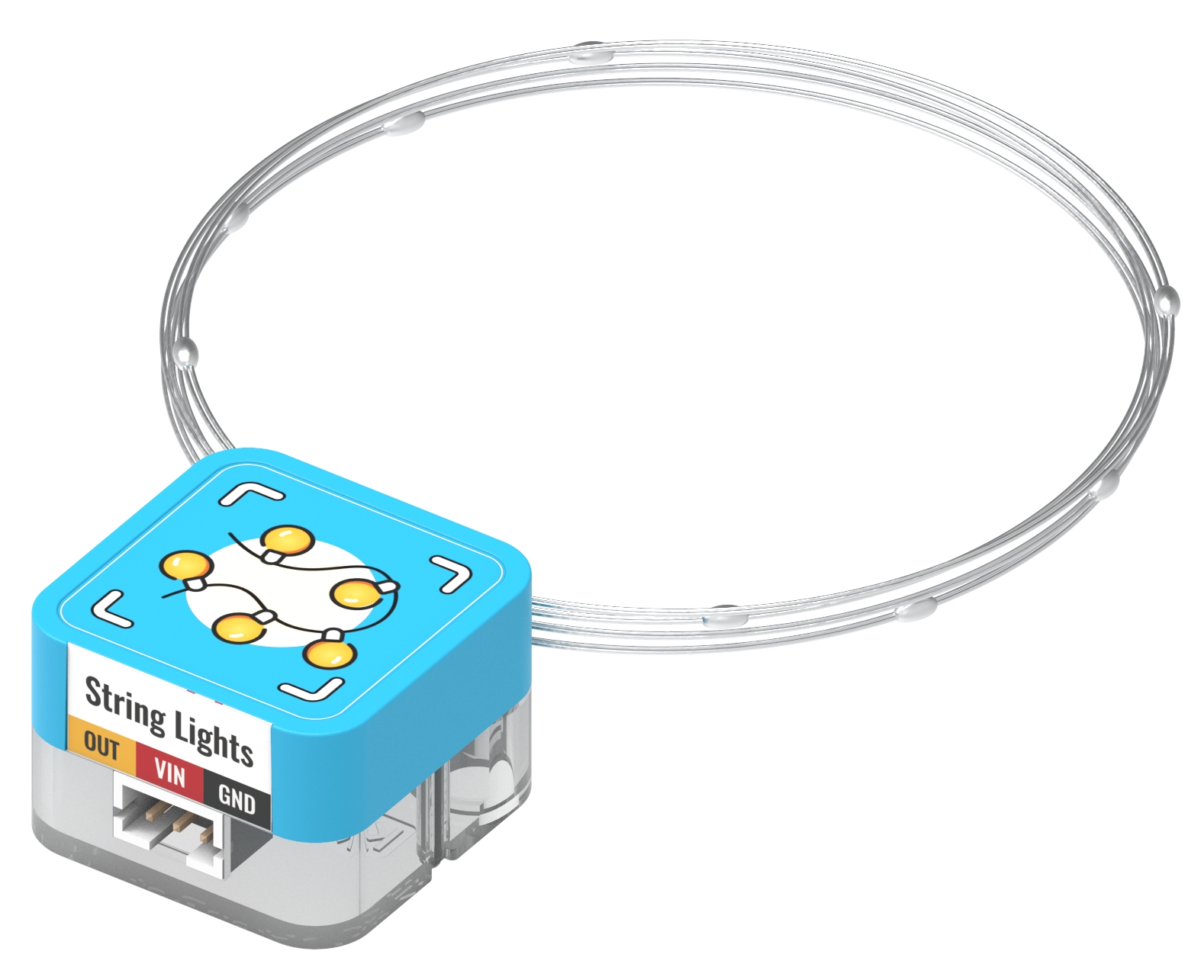 這是一個燈串模組,柔軟的電線容許將模組繫在各種物件上作裝飾之用。