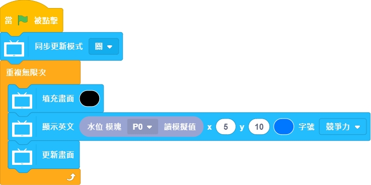 screen.text(waterlevel_P0.value(),5,10,2,(0, 119, 255))