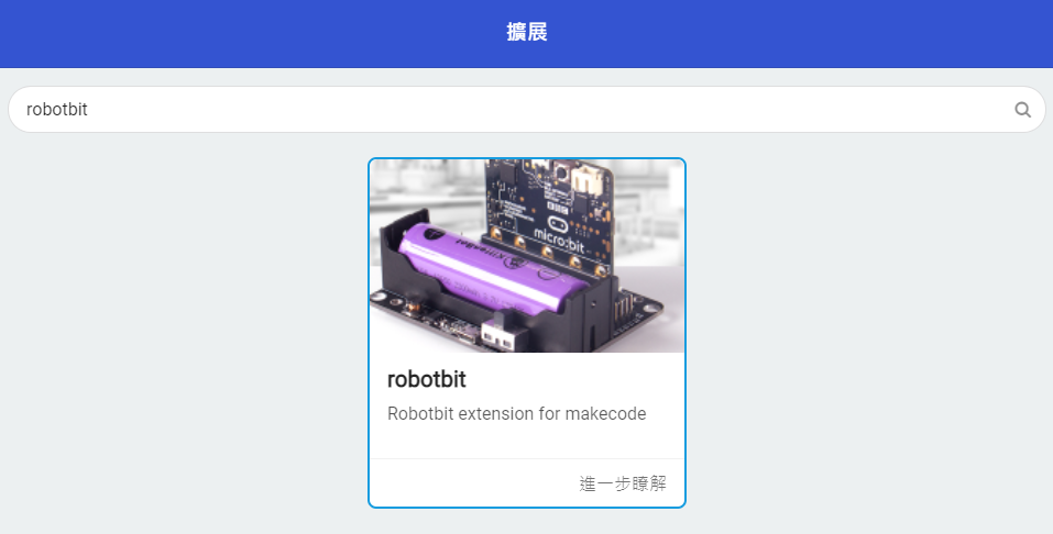 在擴展頁直接搜尋robotbit (robotbit已經過微軟認證,可以直接搜尋)