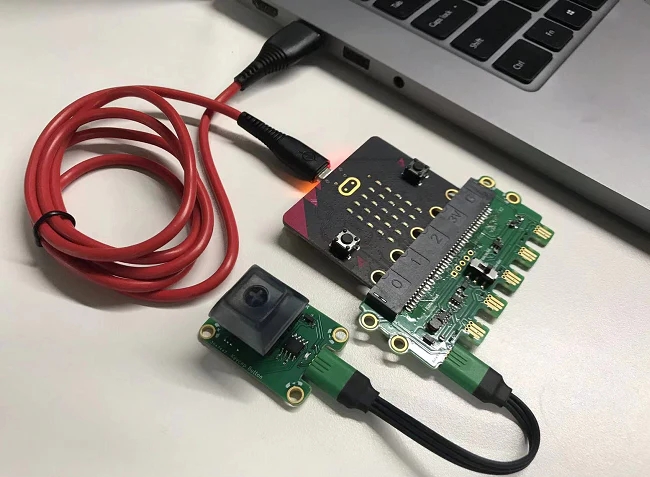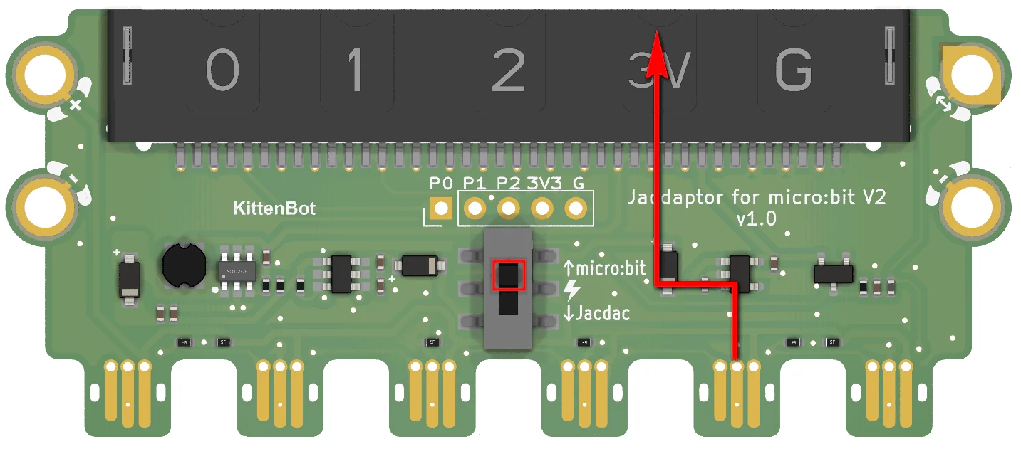 當電源掣撥向上,代表電源由Jacdac模組供向Micro:bit。