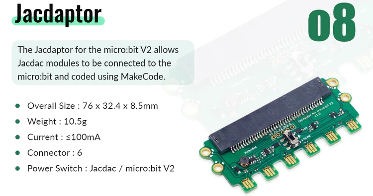 Jacdapter是Micro:bit V2專用的Jacdac擴展板,它為Micro:bit帶來6組Jacdac接口。