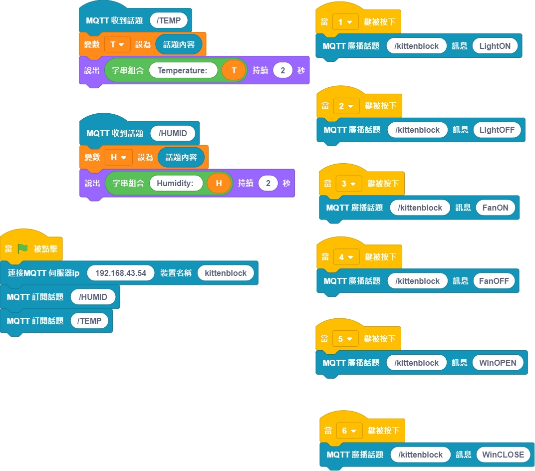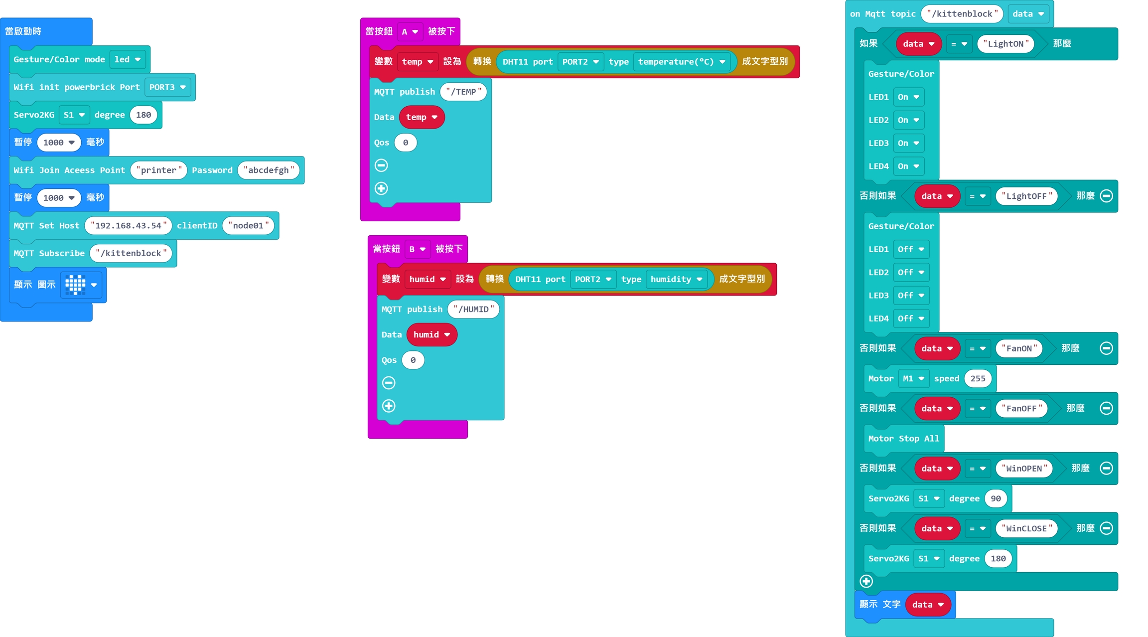 按下A或B鍵會發佈溫濕度資料到伺服器,再由小貓說出。
