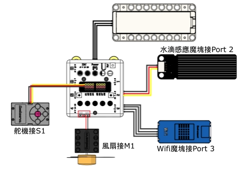 智能晾衣架會自動判斷是否有雨水,有雨水就收回衣桿,並且打開風扇,吹乾衣服,沒有就關閉風扇,伸出衣桿。