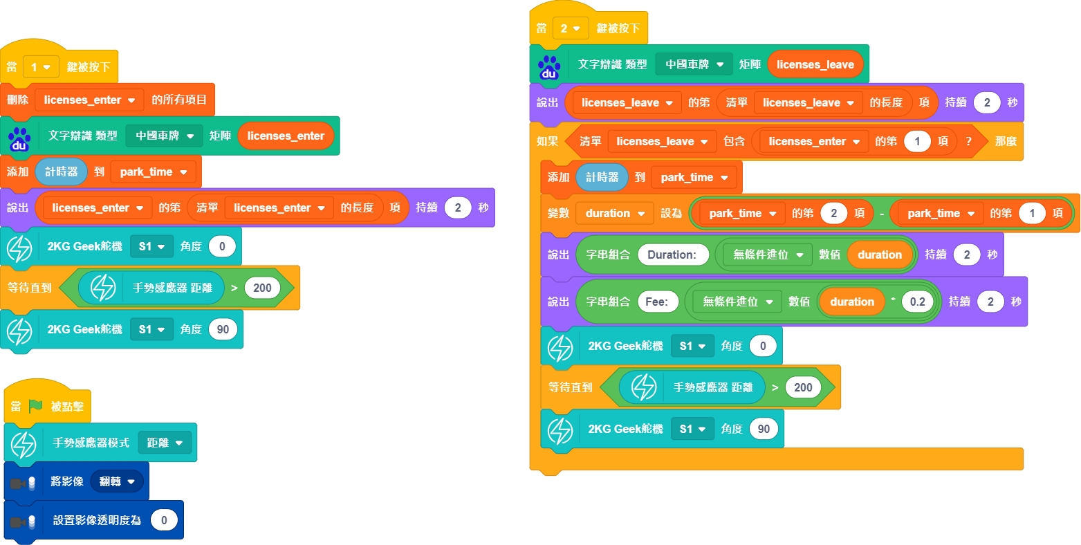 按下2,辨認離開車輛之車牌號,並記錄當前時間。