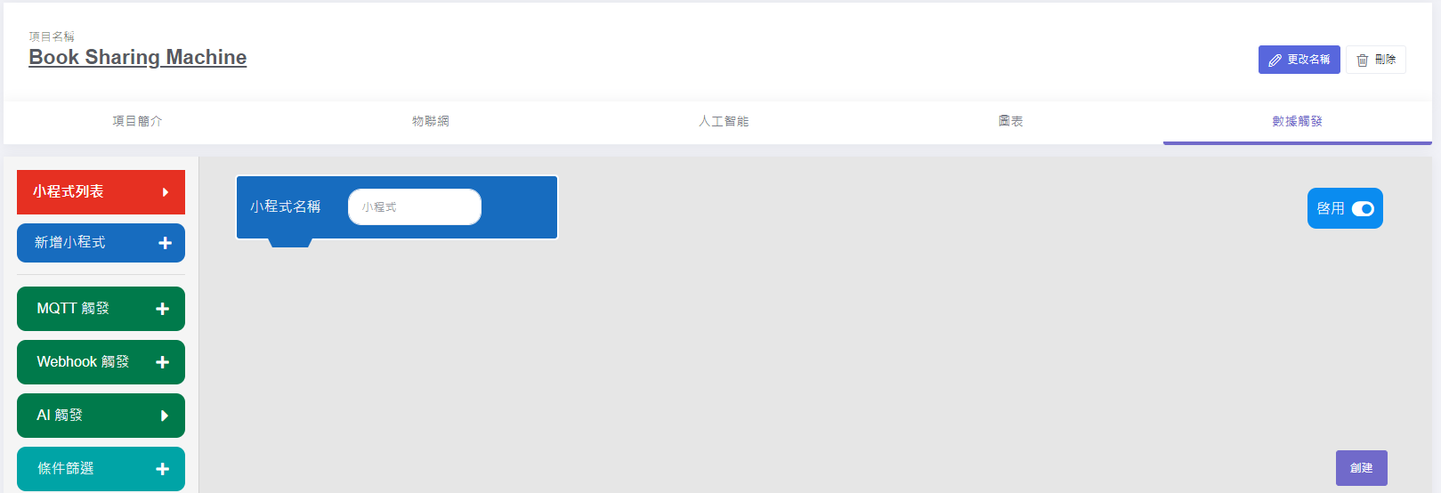 7. 切換到數據觸發頁面