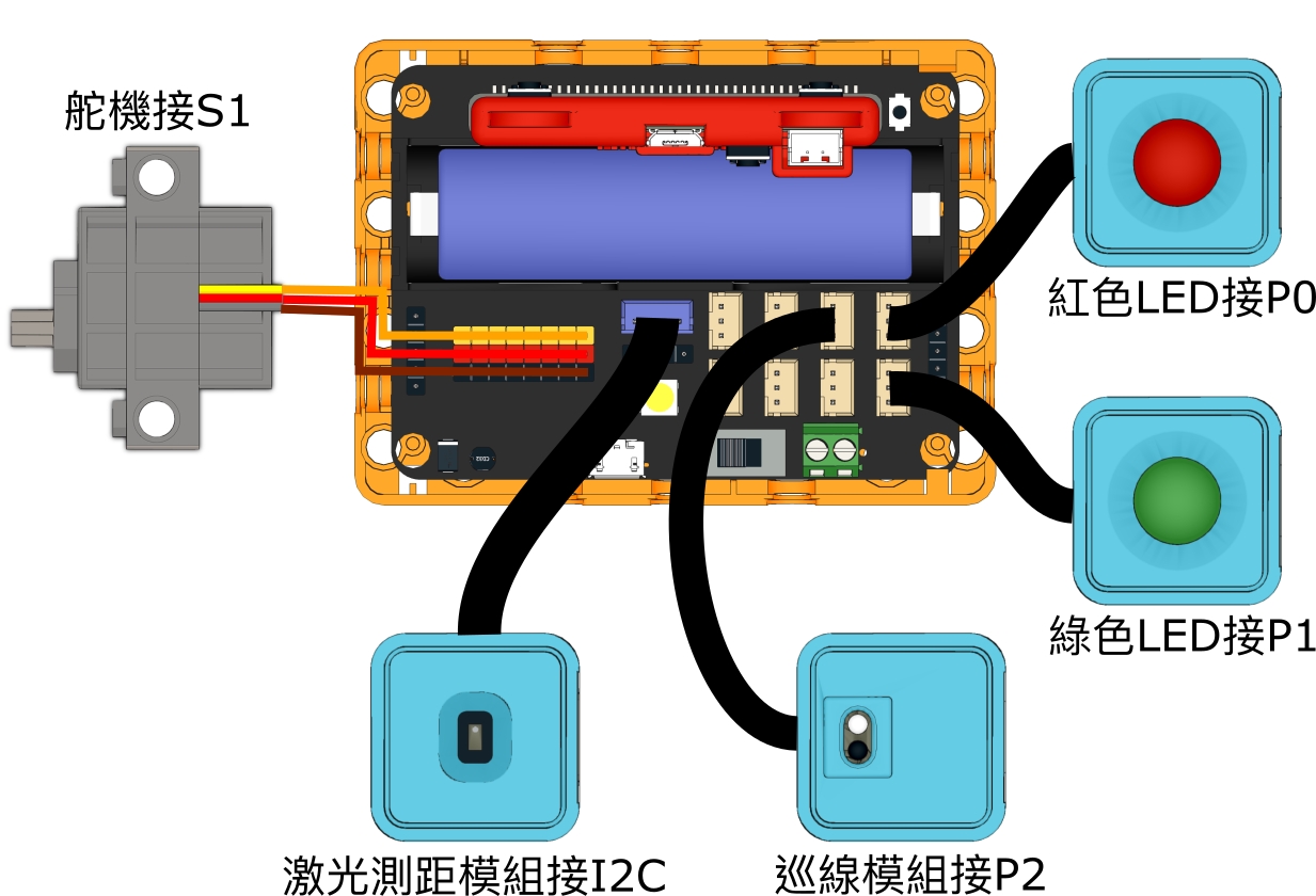 將小車放到閘門前,閘門就會打開。將小車泊到泊車位,門口的紅色LED會亮起。