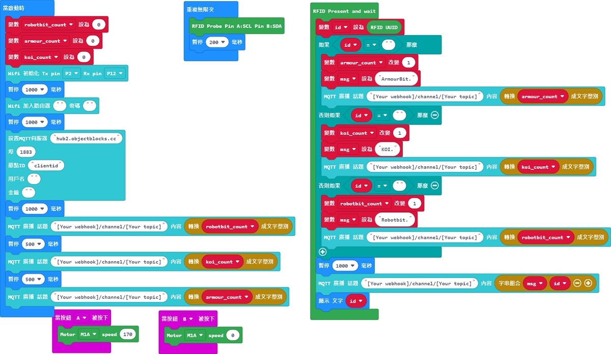 在程式填入Wifi的登入資料和ObjectBlocks的主題資料