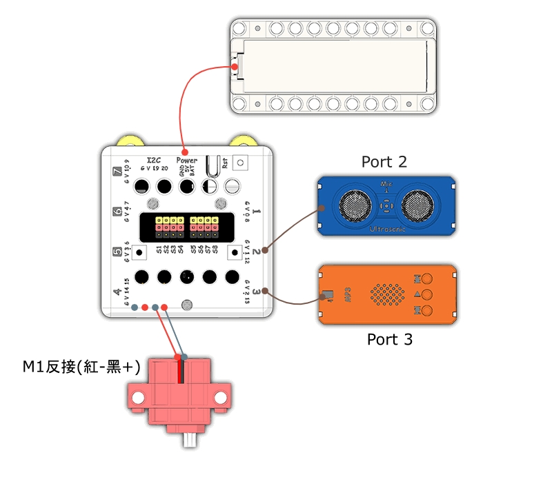 將手指放到超聲波感應器前5cm內,恐龍會發出吼聲。