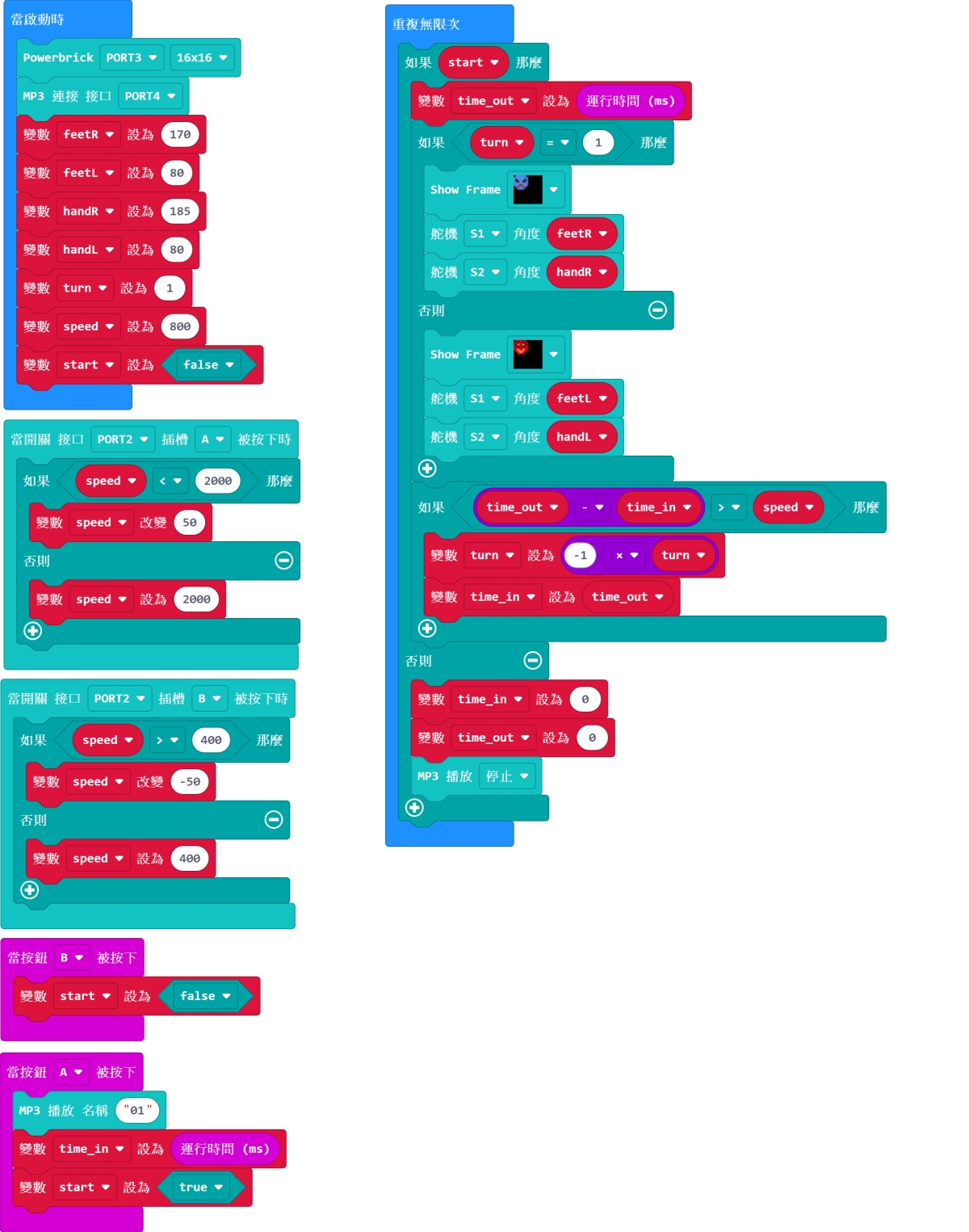 你亦可以按按鍵模組的A和B按鍵可以分別加長或減短機械人跳舞的時間。