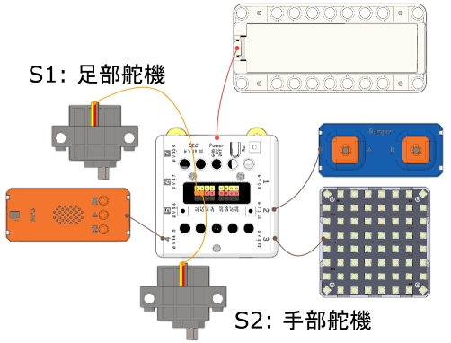 開動模型後,按下MicroBit的A按鍵,模型會開始播放音樂,機械人會開始跳舞。