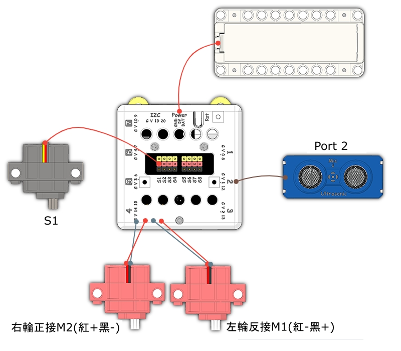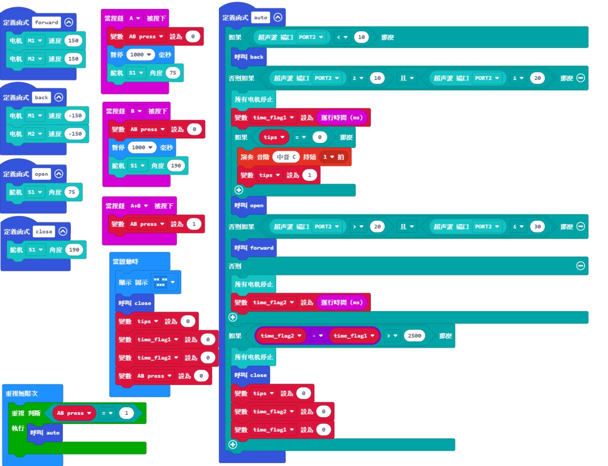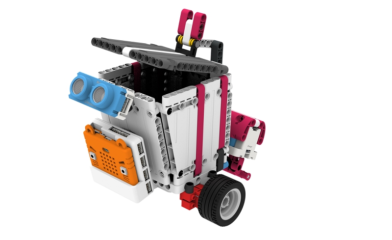 將垃圾桶放在桌上然後開動模型,再同時按下A和B按鍵就可以開始控制它。