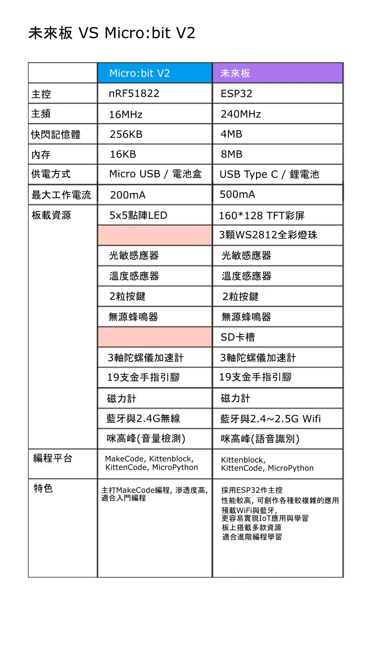 與Micro:bit對比:¶