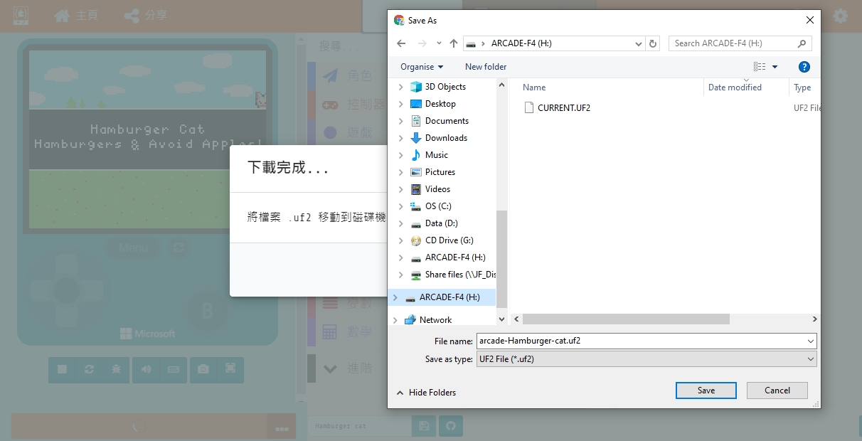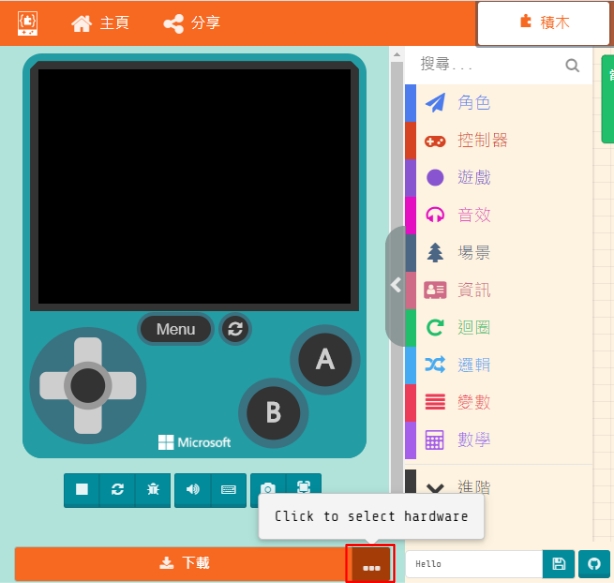 編程完成之後下載遊戲到MeowBit。