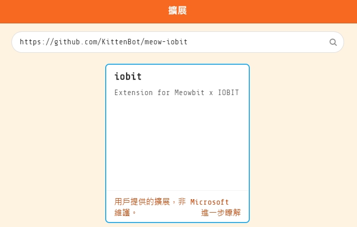 Meowbit上的引腳其實也支援Kittenbot的其他擴展板,在這節教程我們會看看Meowbit怎樣和IOBit一起使用。