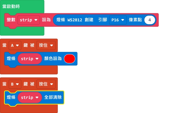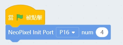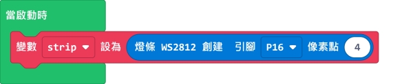 在Meowbit上使用Robotbit的燈條時,需要在Pin 16設置長度為4的WS2812燈條。