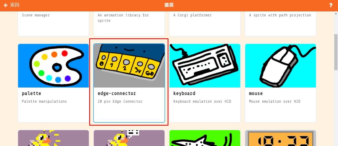 Meowbit上有20Pin的引腳金手指,大家可以用鱷魚夾連接不同的模組在MakeCode Arcade使用。