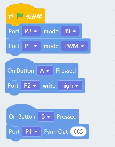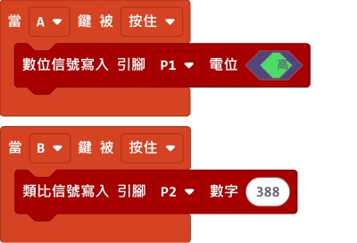 按A寫入P2的數位數值,按B寫入P1的類比數值。