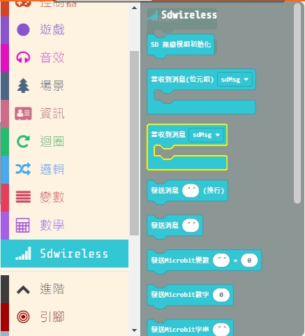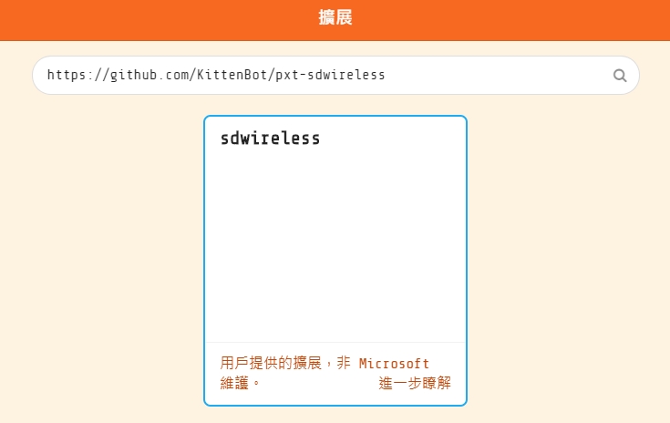插件地址:https://github.com/KittenBot/pxt-sdwireless