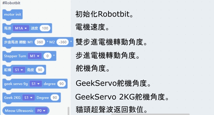 Meowbit上的引腳其實也支援Kittenbot的其他擴展板,在這節教程我們會看看Meowbit怎樣和Robotbit一起使用。