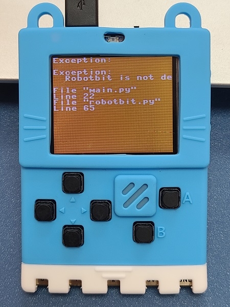 問:我在Kittenblock上載程序到Meowbit之後出現錯誤,畫面顯示 ”Robotbit is not defined”,應該如何解決?