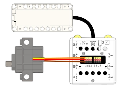 將步進電機連接到Robotbit的M1和M2上(將紅色電線連接到VM)。