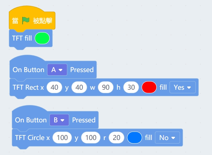 Meowbit在Kittenblock上可以對顯示屏做編程。
