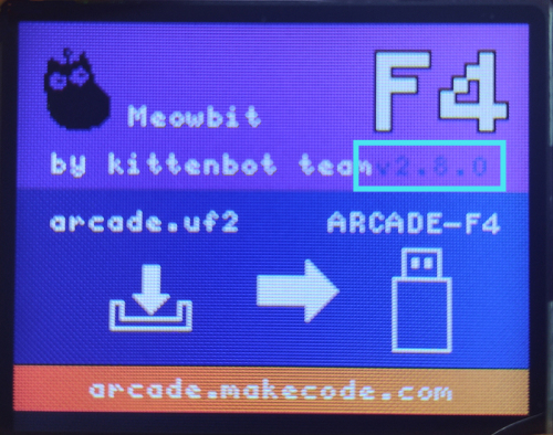 Meowbit會顯示寫著F4字樣的介面,進入模式成功。