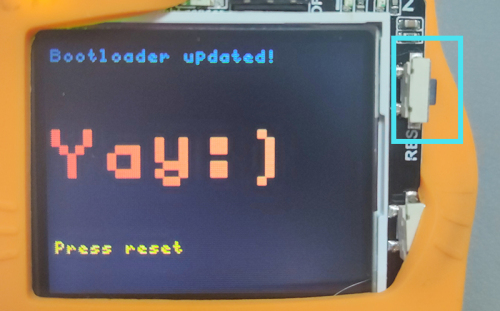 將更新檔案拖到Arcade-F4上面。等待MeowBit出現YAY字樣,然後按一下重置按鍵。