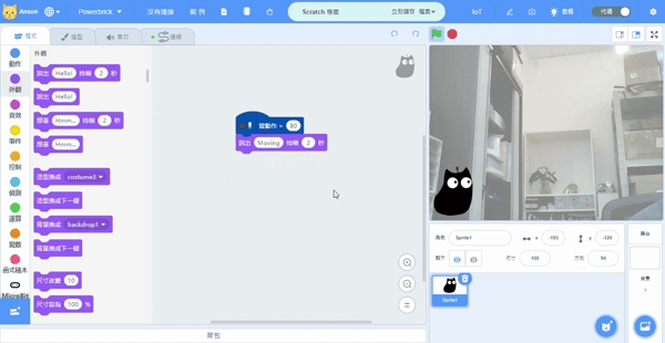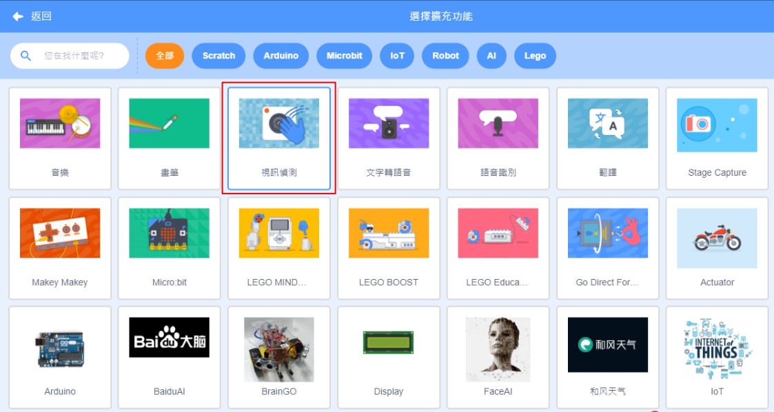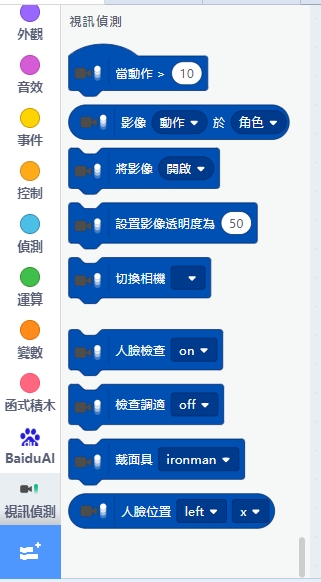 在Kittenblock中我們可以利用電腦的鏡頭做視訊偵測。