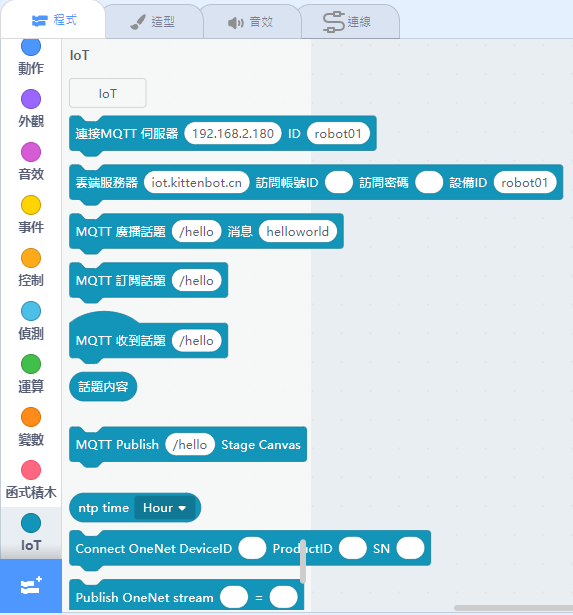隨著5G網絡的落實,IOT(物聯網)是近年來的熱門話題。Kittenblock中也預載了iot的插件,讓大家可以在Kittenblock中學習IOT。